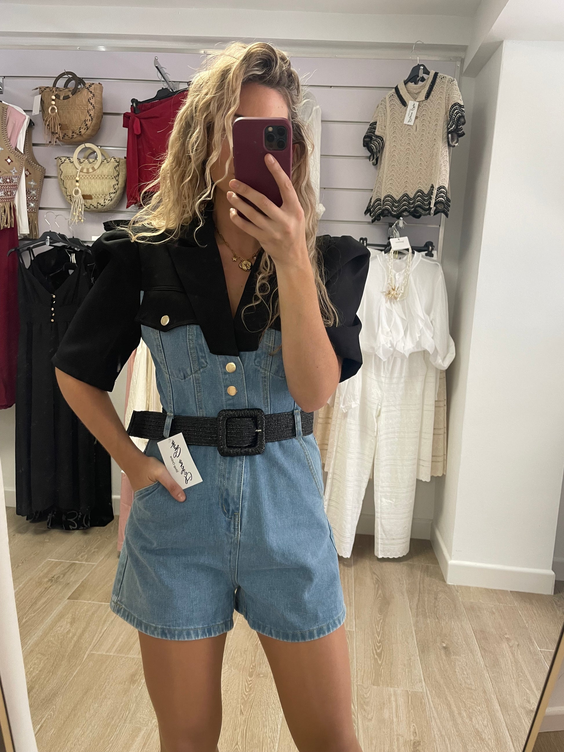 Combina lo mejor de ambos mundos con nuestro Mono Denim. Este versátil atuendo combina la elegancia de un blazer con la comodidad y estilo del denim. Perfecto para un look casual pero sofisticado, el Mono Denim te hará destacar en cualquier ocasión. ¡Haz una declaración de moda con nuestro Mono Denim!
